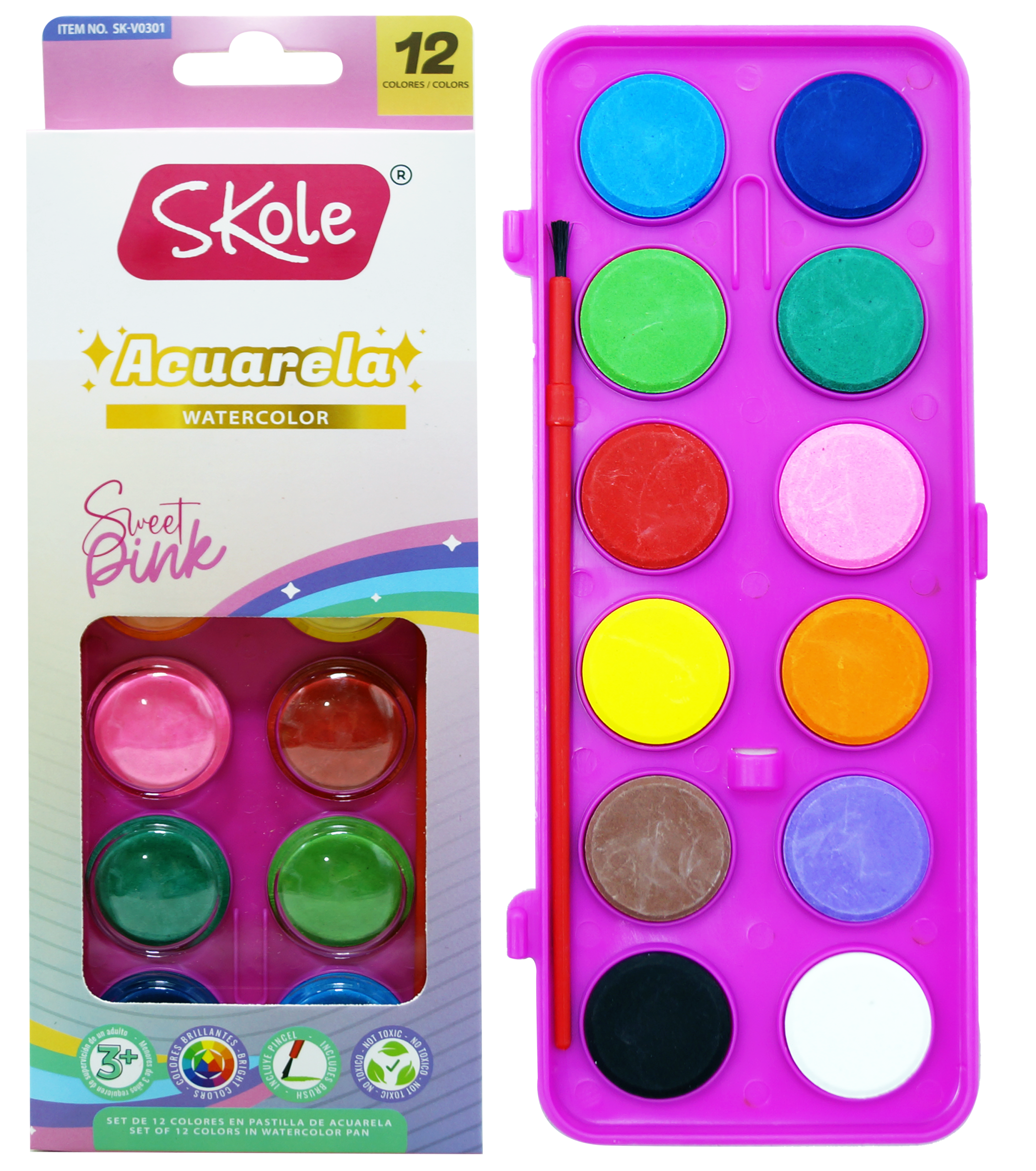 ACUARELA 12 COLORES + PINCEL